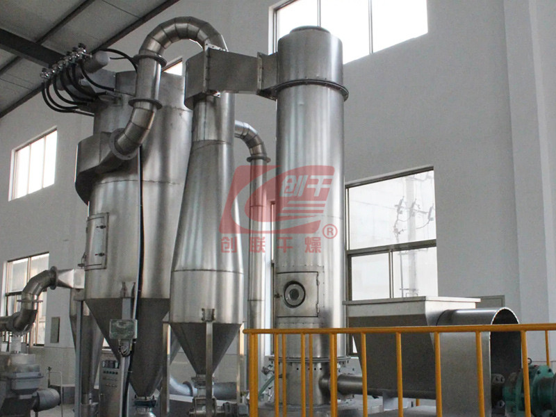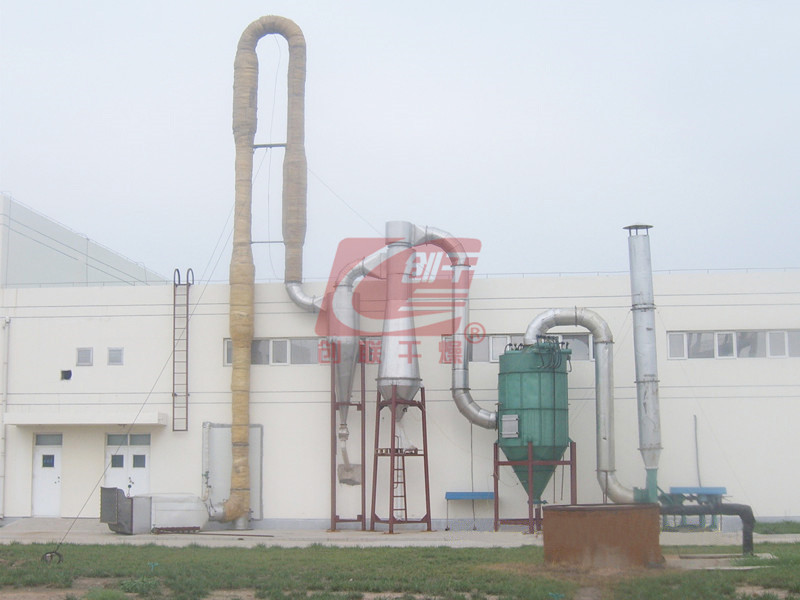 带动湿物料,使湿物料悬浮在热空气中,这样强化了整个干燥过程,提高了传热传质的速率,经过气流干燥的物料,非结合水分几乎可以全部除去(例如:淀粉等物料进料含水量≤40%左右,成品出料可为13.5%), 并且所干燥的物料,不会产生变质现象,产量可比一般干燥机干燥有显著提高,用户可在短期内取得较高的经济效益。