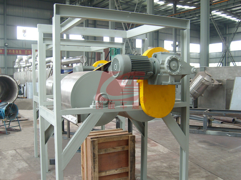 启动电机,主滚筒动运转平稳,温度升高后加入物料后调整电机转速及物料在滚筒上薄膜均匀程度来控制物料最终含水量。