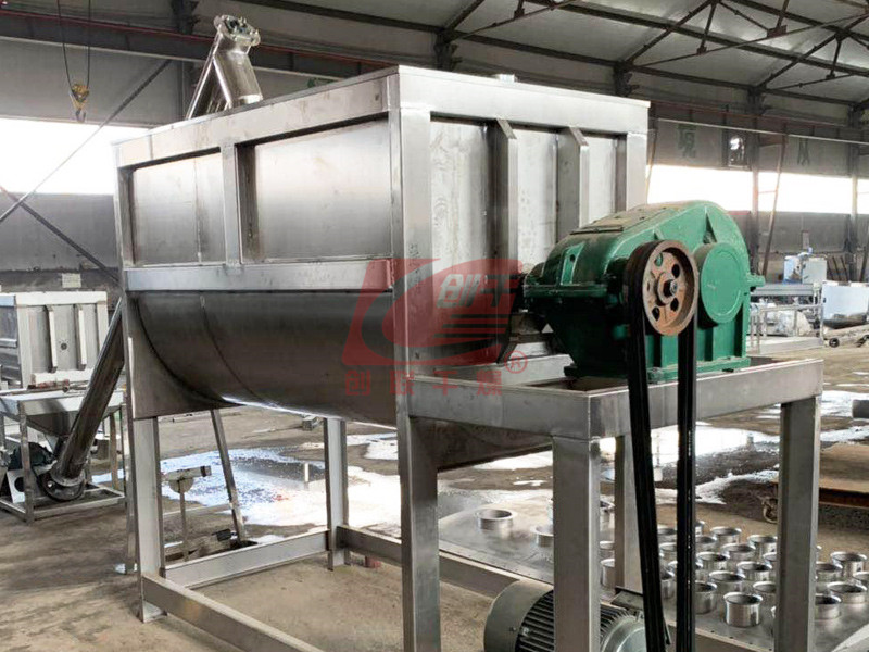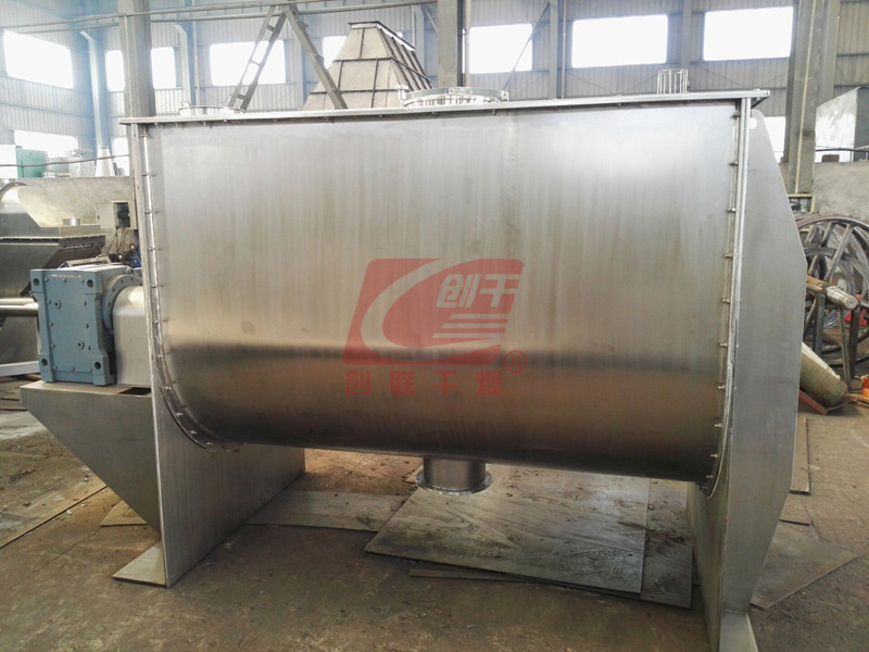 该机型由容器、螺旋搅拌叶片和传动部件组成:螺旋叶片一般做成双层或三层,外层螺旋将物料从两侧向中央汇集,内层螺旋将物料从中央两侧输送,形成对流混合。