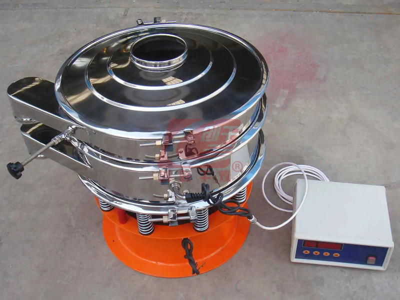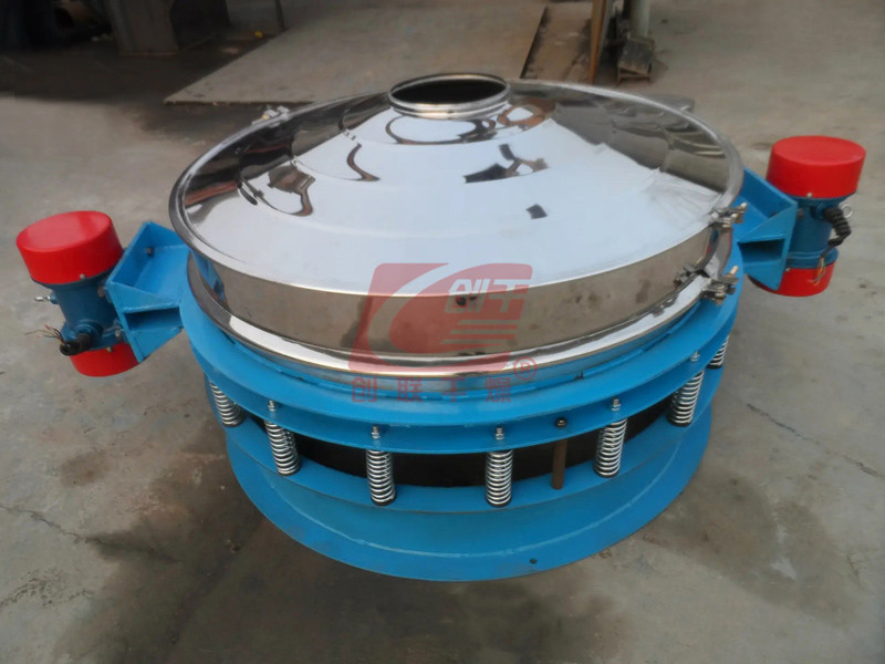 本机由料斗、振荡室、联轴器、电机组成。振荡室内有偏心轮、橡胶软件、主轴、轴承等组成。可调节的偏心重锤经马达驱动传达到主轴中心线,在不平衡的状态下产生离心力,使物料强度改变,在筛内形成轨道旋涡。重锤调节器的振幅大小可根据不同物料和筛网进行调节。整机结构紧密、体积小、不扬尘、噪音低、质量高、能耗低、移动维修方便。