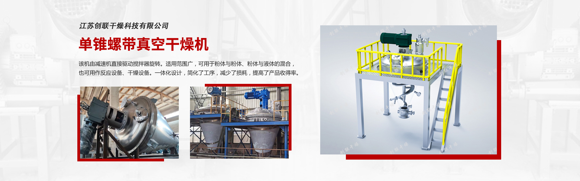 江苏创联干燥科技有限公司坐落在江南名镇——焦溪镇,是一家专业从事干燥、粉碎、混合、制粒等设备的专业